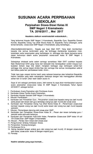 Perpisahan kelas merupakan momen penting yang menandai akhir dari sebuah perjalanan pendidikan dan awal dari babak baru dalam kehidupan. Untuk mengabadikan momen berharga ini, diperlukan susunan acara perpisahan yang berkesan dan bermakna. Sebagai pakar SEO dan copywriter, kami akan menyajikan panduan komprehensif untuk menyusun acara perpisahan kelas 9 Bahasa Inggris yang akan meninggalkan kesan abadi.