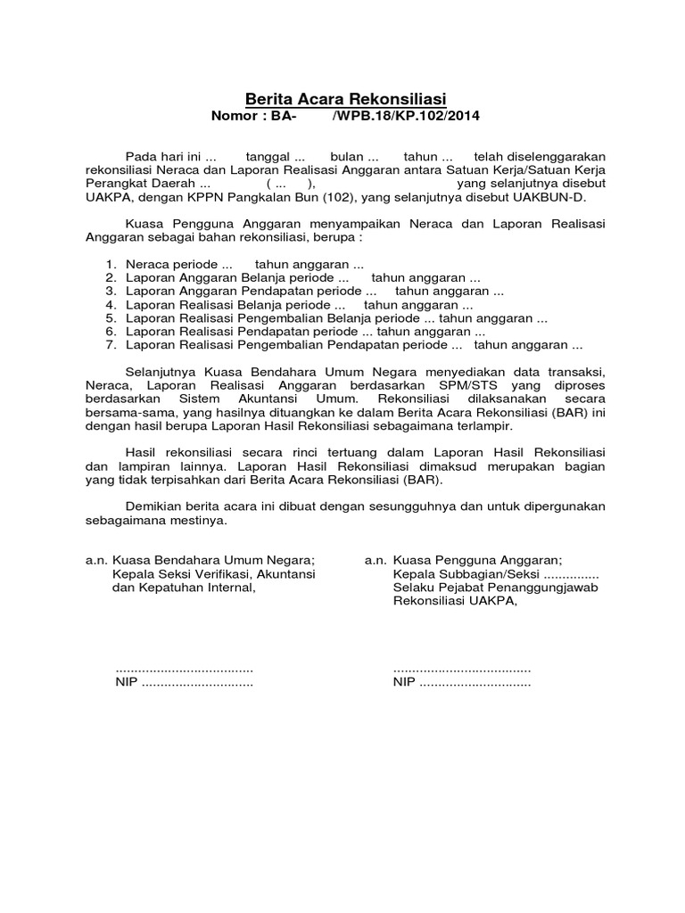 Contoh Berita Acara Rekonsiliasi