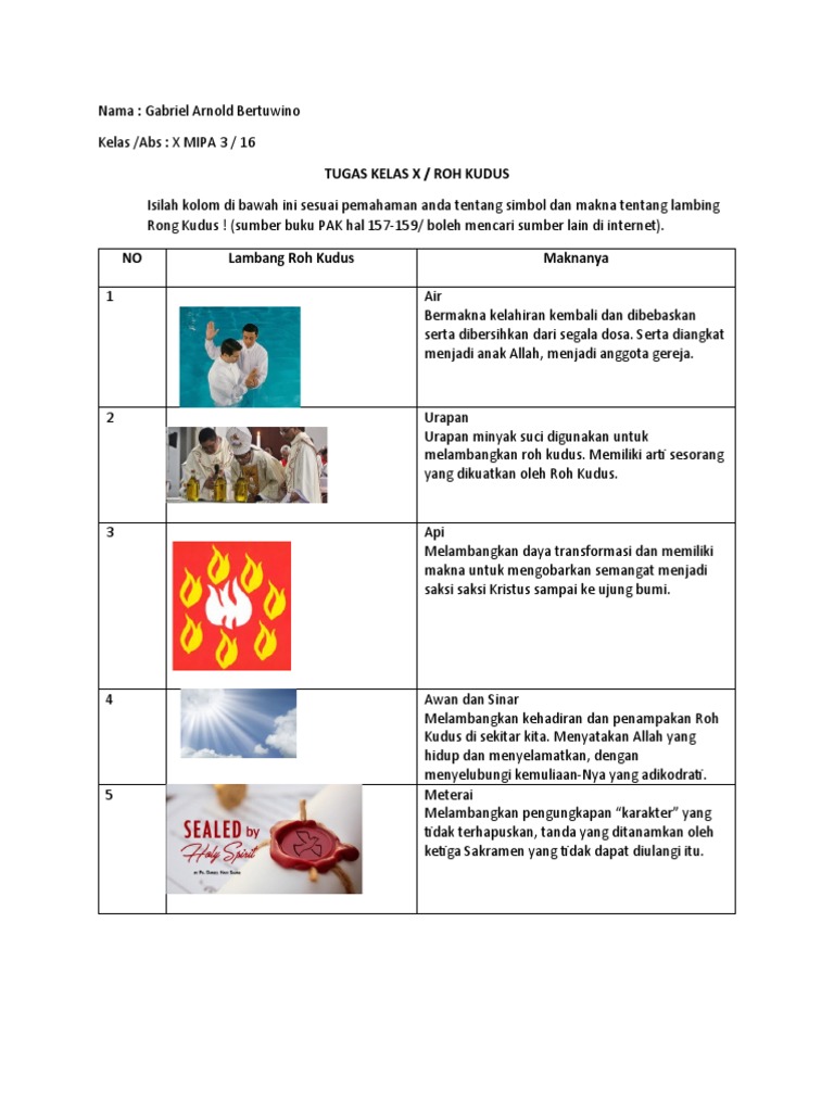 - Mata Air: Roh Kudus dapat dilambangkan sebagai mata air yang memancar, memberikan kehidupan dan penyegaran.